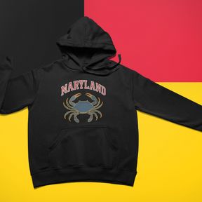 Show off your Maryland pride with this stunning Maryland State Blue Crab Flag Embroidered Pullover Hoodie. The vibrant blue crab design featuring the iconic Maryland flag is beautifully embroidered on a cozy and durable Gildan® Heavy Blend™ hoodie. Perfect for cool weather, casual outings, or simply representing your state in style, this hoodie is a must-have for Maryland enthusiasts.